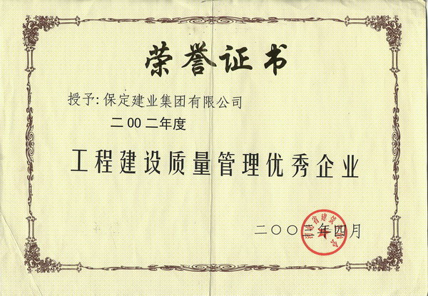 02年度省質(zhì)量管理優(yōu)秀企業(yè)