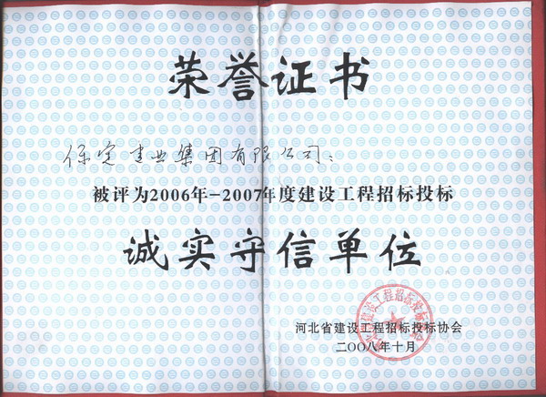 2007年河北省先進(jìn)建筑施工企業(yè)