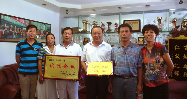 2009年8月12日上午,保定市總工會(huì)有關(guān)領(lǐng)導(dǎo)親臨我集團(tuán)公司,為我集團(tuán)公司頒發(fā)河北省“安康杯”競(jìng)賽活動(dòng)優(yōu)勝企業(yè)獎(jiǎng)牌,為集團(tuán)公司董事長(zhǎng)張?zhí)m柱同志頒發(fā)全國“安康杯”競(jìng)賽活動(dòng)優(yōu)秀組織者證書。這是我集團(tuán)公司繼榮獲河北省“AAA級(jí)勞動(dòng)關(guān)系和諧單位”后,獲得的又一殊榮,標(biāo)志著我集團(tuán)公司安全管理工作邁上了新臺(tái)階。