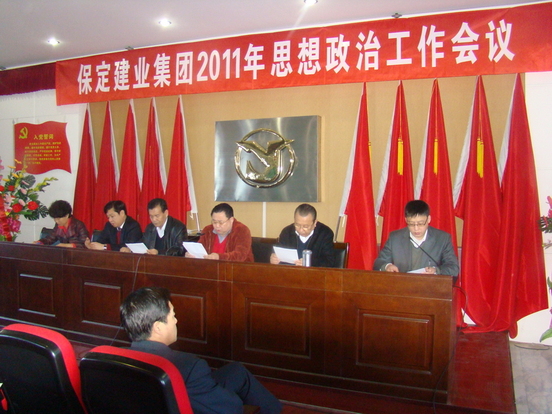 2011年3月8日,保定建業(yè)集團有限公司2011年思想政治工作會議在莊嚴(yán)的國歌聲中拉開了序幕,會議由黨委辦公室主任馬亞軍主持,集團各公司黨、政、工、團、婦、武裝、保衛(wèi)負(fù)責(zé)人參加會議。